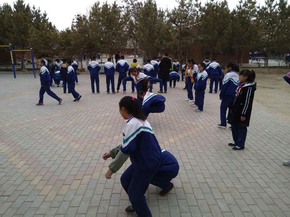 这些同学正在进行的是立定跳远。立定跳远也是中考体育必考项目,他们正在不遗余力地进行练习,以便在中考体育中能取个好成绩。课间活动,同学们既练习了中考体育项目,也减轻了学习压力,也丰富了课余生活,一举多得呀!