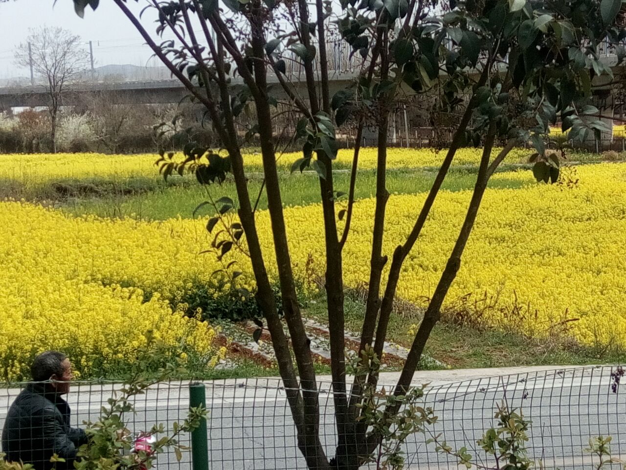从山顶看油菜花和梨花,妙不可言。兰兰的天空,白白的云,金黄的油菜花,雪白的梨花,偶尔还有几只小鸟飞过,这些景色形成了构成了一幅艳丽的画卷。人在这种景色下谁不会被陶醉?
