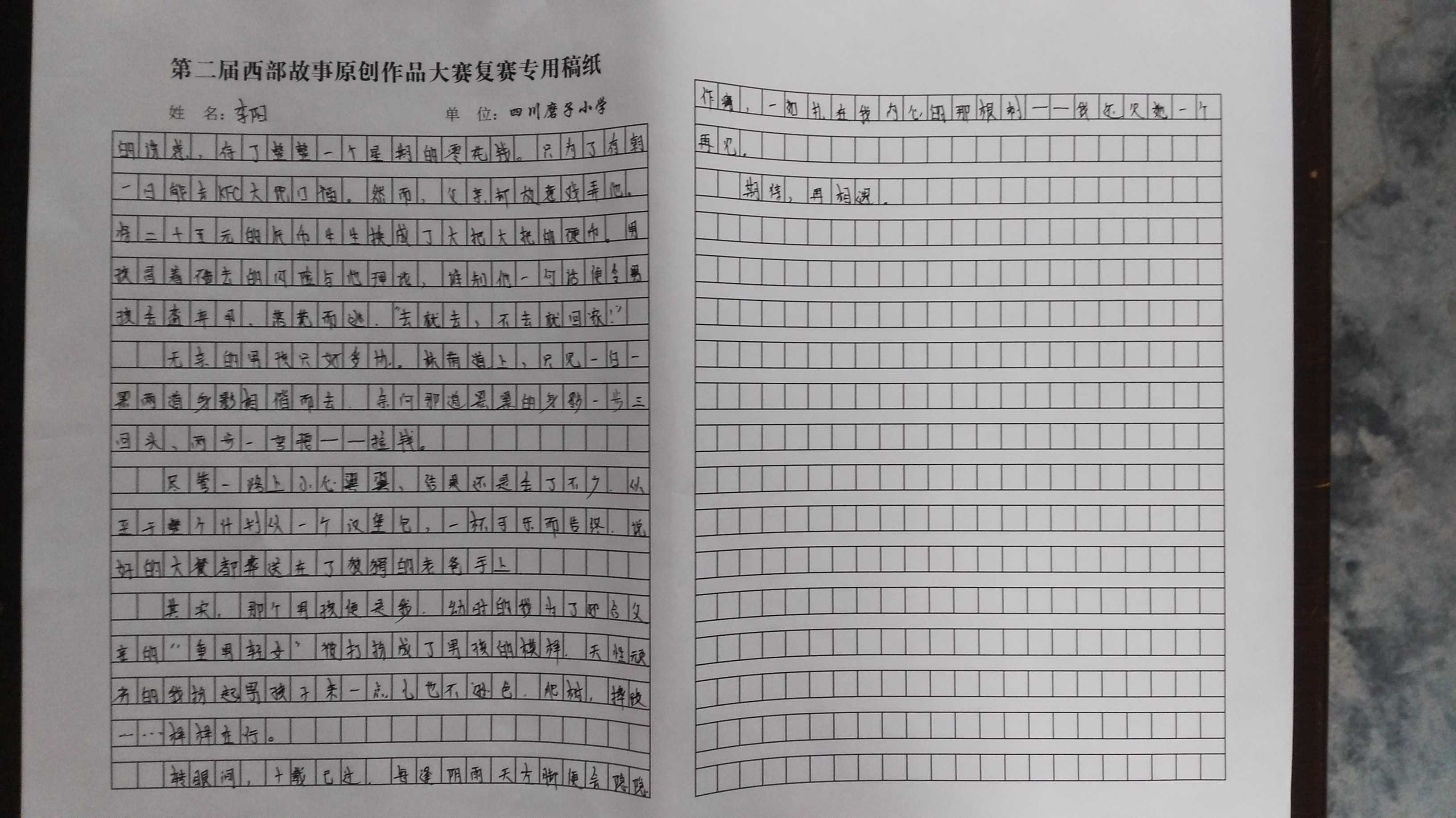 后来,男孩才知道她是小区北面新来的住户。男孩的脚好了,但留下了后遗症。一到阴雨天左脚便酸疼不已。因祸得福,他们成了好朋友。天性顽皮的他们除了会玩,还有一个技能那就是吃了。冰糖葫芦,铁板鱿鱼,糖炒栗子,手撕牛肉……凡是能吃的他们都吃。但最爱的还是那时距离小区两条街之外的KFC了。炸鸡,香肠,可乐……总之一句话,肯德基里就没有他们不爱的。犹记得一次,他俩咽着口水抵挡住了冰糖葫芦的诱惑,存了整整一个星期的零花钱,只为了有朝一日能去KFC大饱口福。然而,父亲居然故意戏弄男孩,将他攒下的二十五元钱统统换成了大把大把的硬币。男孩冒着不去的风险与他理论。谁知他一句话便令男孩丢盔弃甲,落荒而逃。"去就去,不去就在家待着。"无奈的男孩只好妥协。林荫道上一白一黑的两道身影相携而去,奈何那道黑黑的身影一步三回头,两步一弯腰——捡钱。 尽管一路上小心翼翼,结果还是丢了不少的硬币。以至于整个计划以一个汉堡,一杯可乐而告终。说好的大餐一顿都葬送在了狡猾的老爸手上。其实,那个男孩就是我。幼时的我为了迎合父亲的"重男轻女"被打扮成了男孩的模样。天性顽劣的我扮起男孩子来一点也不逊色。爬树,摔跤……样样在行。时间一长,大家也就真把我当成男孩子了。 转眼间,十载已过。每逢阴雨天左脚便会隐隐作痛,一如扎在我内心的那根刺——我还欠她一个再见。 期待,再相遇。