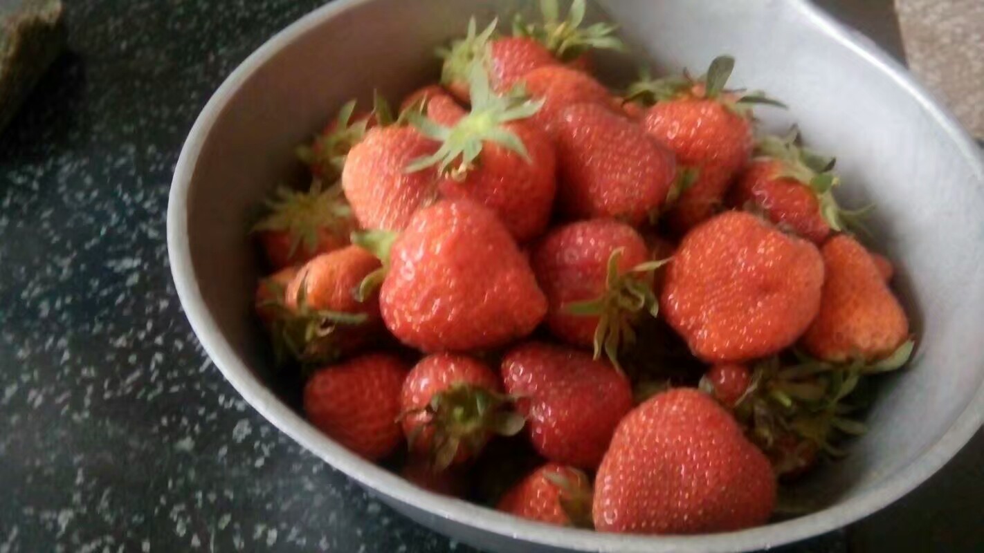 当然啦,想要吃到没有农药的草莓也不是那么容易的。首先你得要有草莓苗,我家的草莓苗是我们洗了草莓的水泼到地里自己长出来的。这是为什么呢?因为洗草莓时,草莓的种子就会掉下来,你将水泼在地里,它就会长成草莓苗。妈妈选了一片土地肥沃并且阳光充足的地方,把草莓苗移栽在那里。经过妈妈的细心呵护,草莓苗很快就从两三株,发展到现在的一大片。更值得我开心的是――春天和夏天,我有了吃不完的草莓。