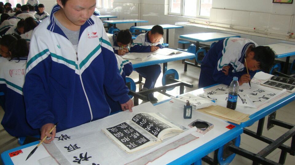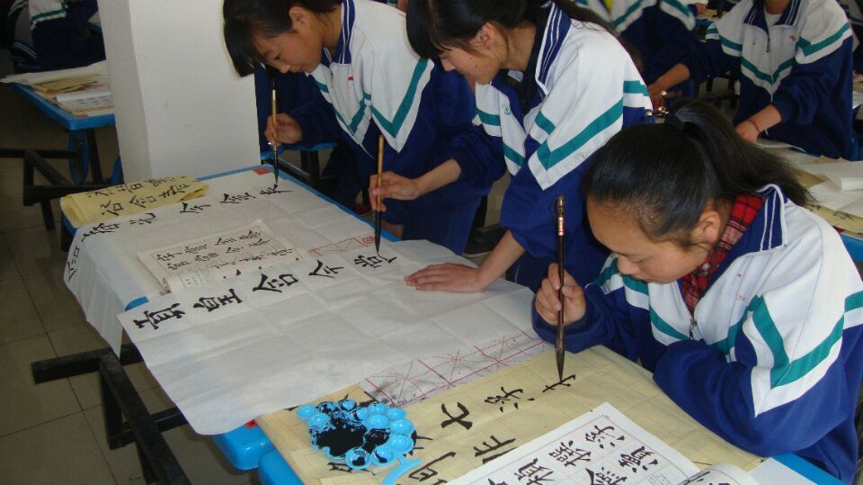 书法是中华民族的瑰宝,历代以来人才济济,大家辈出,同学们练习书法的时候,大多从柳体、颜体、欧体开始入门。书法可以让我们做事更加专注、艺术鉴赏能力更高,一手好字可以让人们刷新对你的认识。看,这些同学是多么专心致志呀!