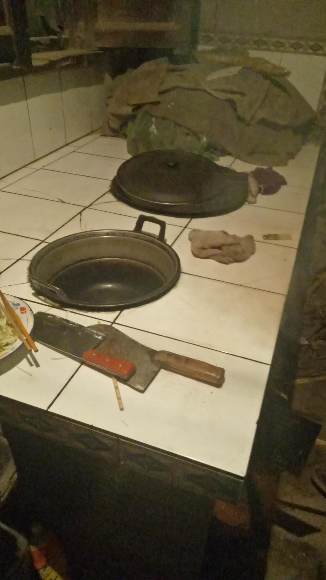 叔叔一家人很热情,杀了自家养的鸡,羊来招待我们。鸡肉和羊肉已经炖到锅里了,满院子飘着肉的香味。叔叔家的灶是烧柴火的大土灶,大大的灶台上有三口锅,一个大锅,两个小锅,不过那个小锅还是比我家做饭的锅大许多。他们家也有电锅啥的,但是哪位奶奶说,柴火灶做的饭香,所以她一直都用柴火灶做饭。