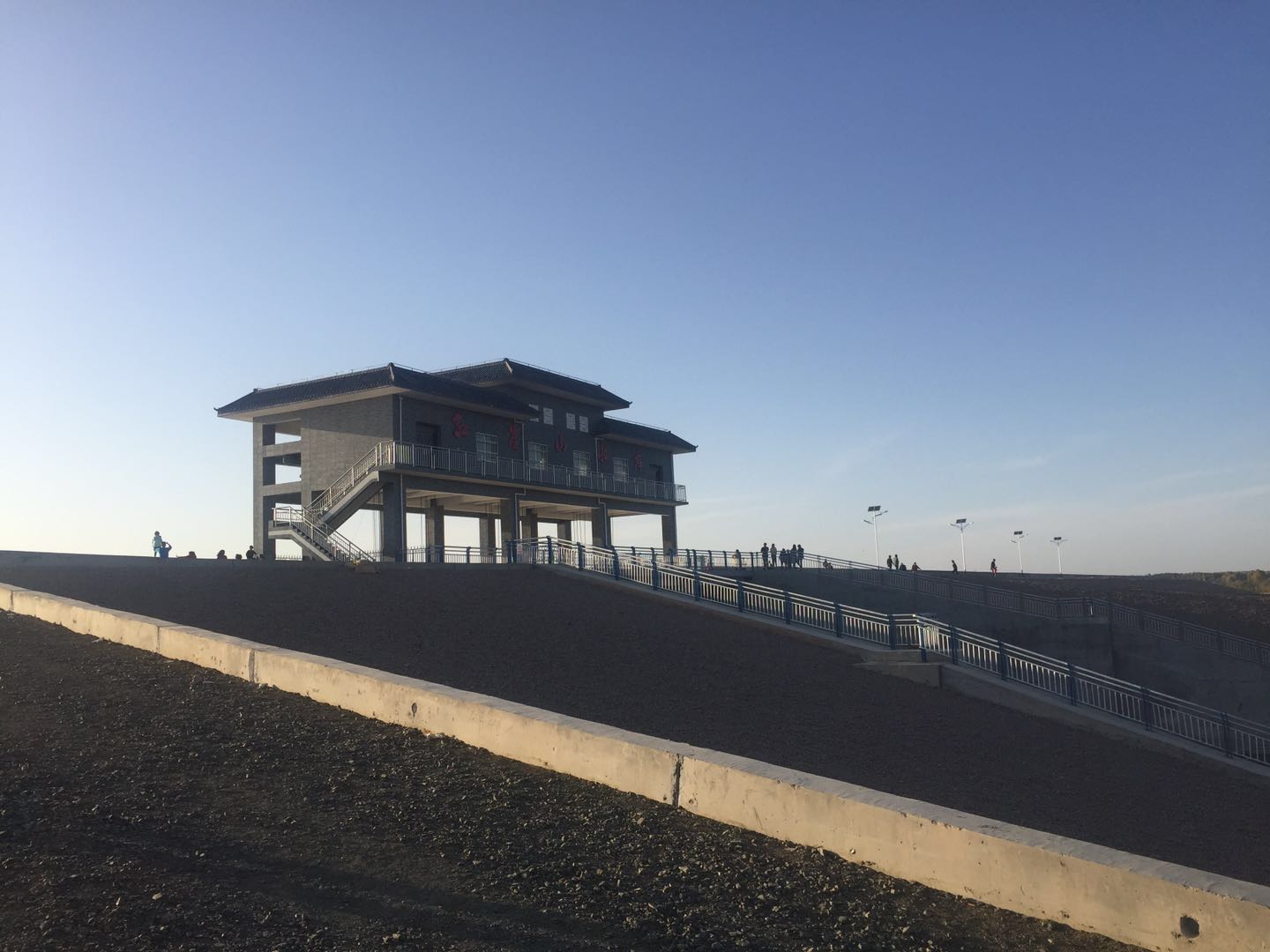 我们走的高速公路,先到的武威市,然后一路北上到民勤,一路上有的地方绿树成荫,有的地方茫茫戈壁滩。快到民勤的地方有个红崖山水库,看着停的车挺多,我们也停下来看看。夕阳西下,水库里水波荡漾,被夕阳一照全是金光闪闪的一片,刺的眼睛都有点花。水库并不大,也不壮观,但是红崖山水库却是"亚洲最大的沙漠水库",水库被巴丹吉林沙漠和腾格里沙漠包围,民勤就是沙漠中的绿洲,而红崖山水库就是绿洲中的明珠。水库只有西面依红崖山而建,其他三面都是人工筑成的,在沙漠里修水库,这在全国乃至世界都少见,所以水库虽小,但还是很有知名度的。