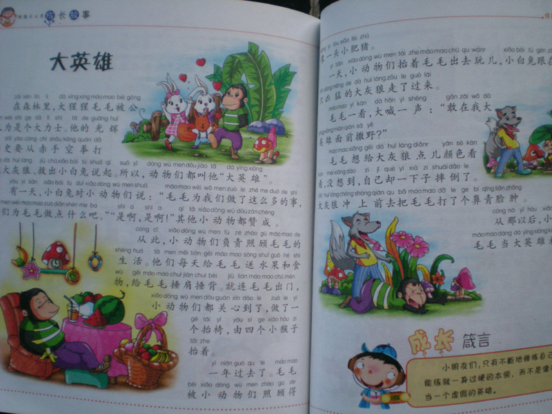 我最喜欢书里的《大英雄》故事了,毛毛以前可厉害了,能空手打大灰狼。可后来,不做活,什么都要人替他做,到后来就打不了大灰狼了。只有锻炼才能有过硬的本领。