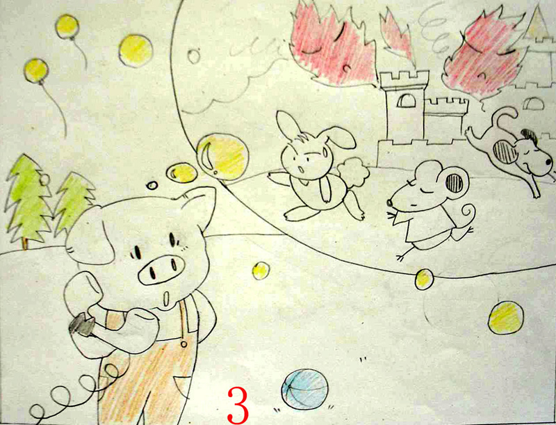 这时从王国里跑出了好多的动物,有小狗、小兔等,小猪马上上前打听,才知道动物王国里着火了。他向动物王国里望去,果然有浓烟和火光。