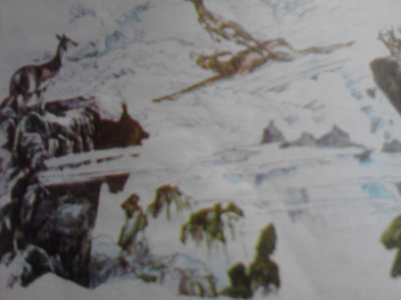 瞧,那一幕幕扣人心弦的场景,那一次次的坠入悬涯,那一个个成功飞渡的羚羊,都无疑是令人震憾的。一切都结束了,一切都沉寂了,只留下那一头斑羚在那,它是谁?它就是镰刀头羊,它甘愿微笑走向彩虹,也不愿成为猎人的盘中餐。