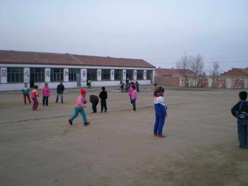 我的学校很大,原先是中学,中学搬走了以后就改成小学了。校园里有好多供我们玩的体育器械,有双杠、爬梯等。我们一下课就去玩了。