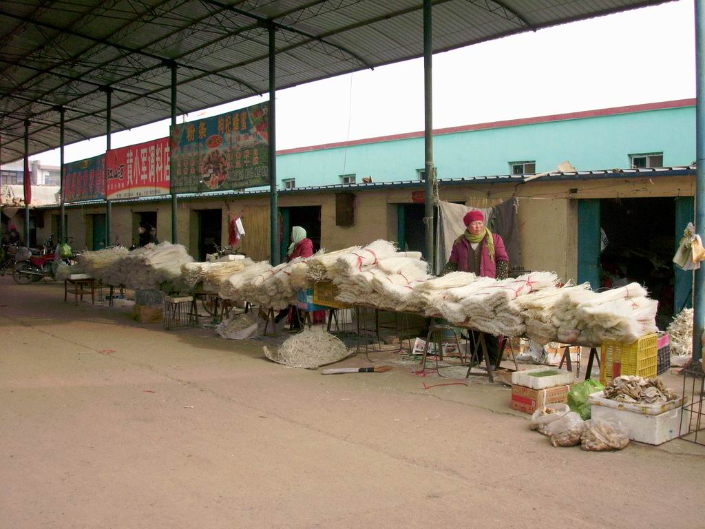 看光是卖粉条的就有这么多,因为这可是我们冬天的一种非常主要的菜了,一般家里在吃肉的时侯都会放一些粉条,吃着有味。。