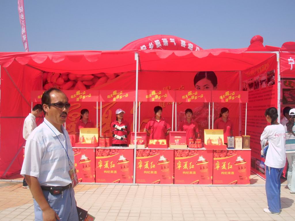 你看,连早就是人所周知的大品牌的"宁夏红"也在这摆出了招牌,他们可是中宁人民的骄傲所在呀,为中宁枸杞的为世人所知付出很大贡献。