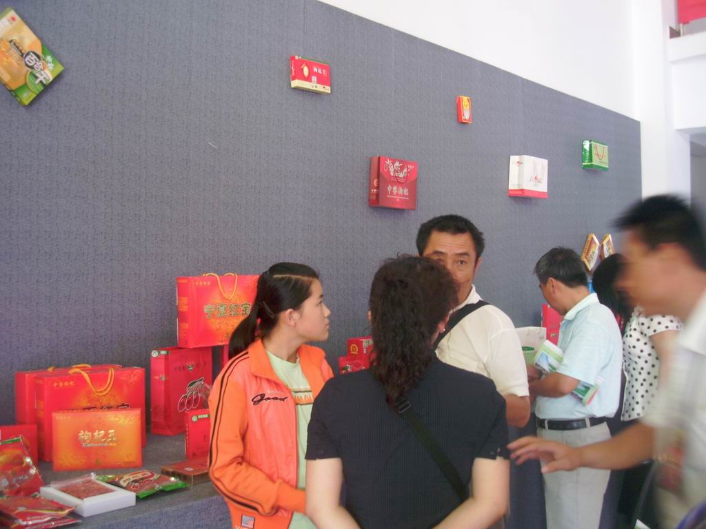 为了更好的宣传自己的产品,各商家可是不遗余力,摆出了好多样品,供大家参观,还提供免费的品尝,只要你愿意就可以尝一尝我们中宁的枸杞新产品。