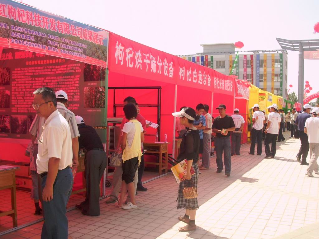 而这次盛会的主要目的不但是为了宣传宁夏,宣传中宁枹杞,更是要招商引资,为中宁的发展注入活力。这不,在我们学校的文化广场还专门搭建了很多的展厅,为本地企业的宣传提供了场所。