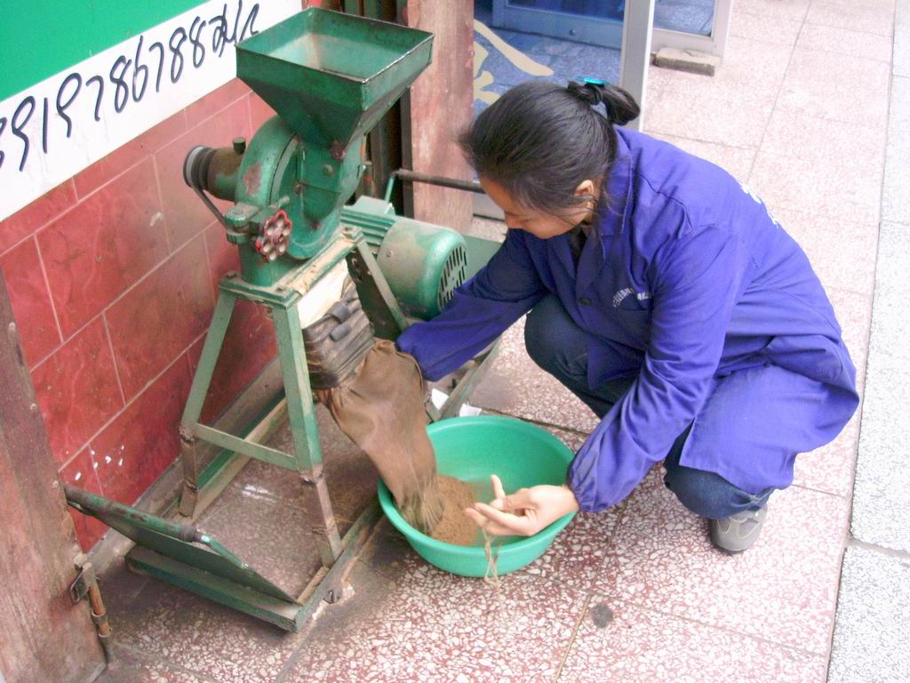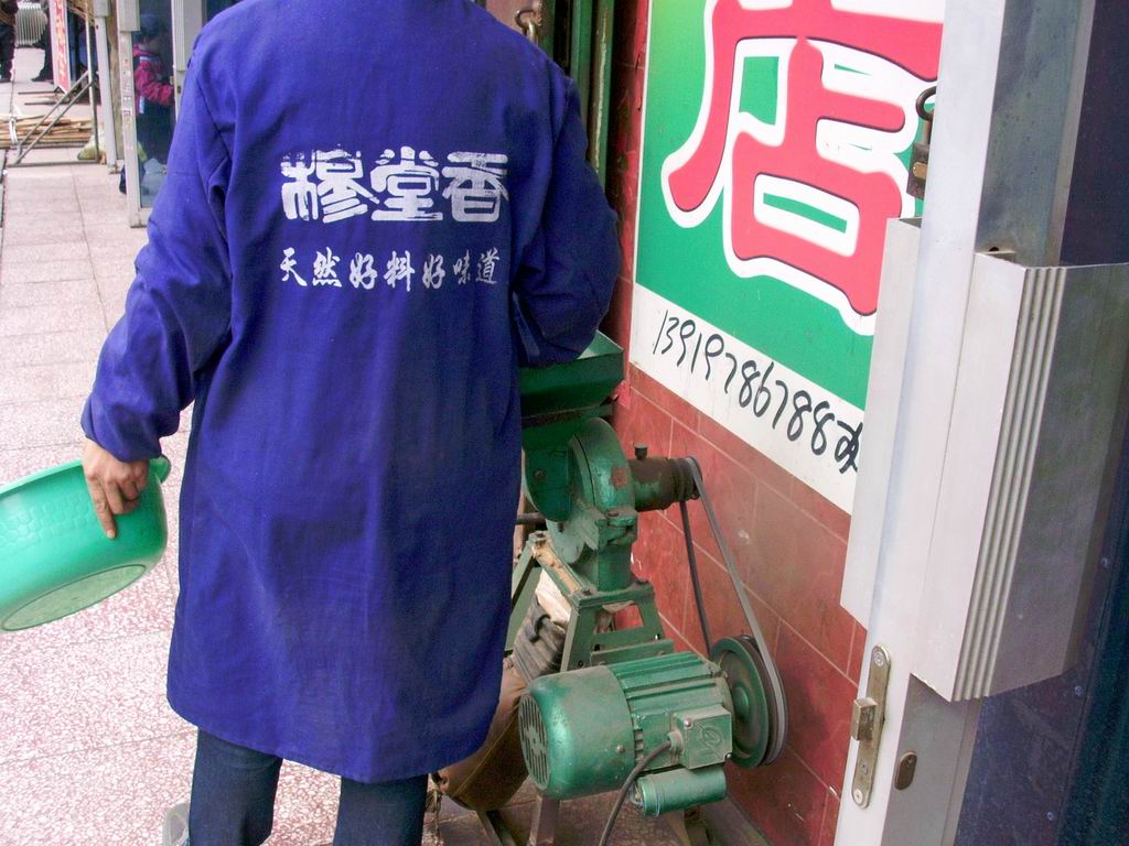 我不好意思地将配料交给了老板娘,她将配料倒进了这个粉碎机里,只听得很刺耳的就从机器里传了出来。很快调料就粉好,老板娘仔细地将调料面倒到了盆里,再倒进塑料袋装好交给了我。OK,终天完成妈妈交给我的光荣任务了!