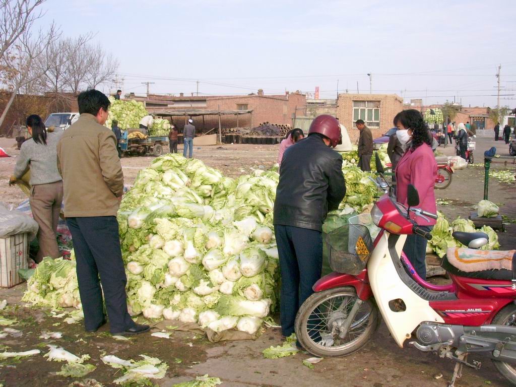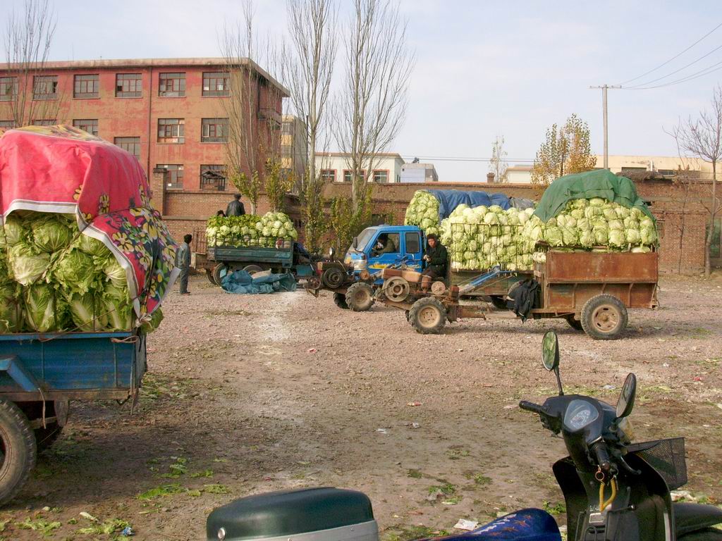 来到卖白菜的地方,还真不少,都是些菜农用家用车拉来卖,成车成车的,从外面看菜真是不错。走,去问问价格。
