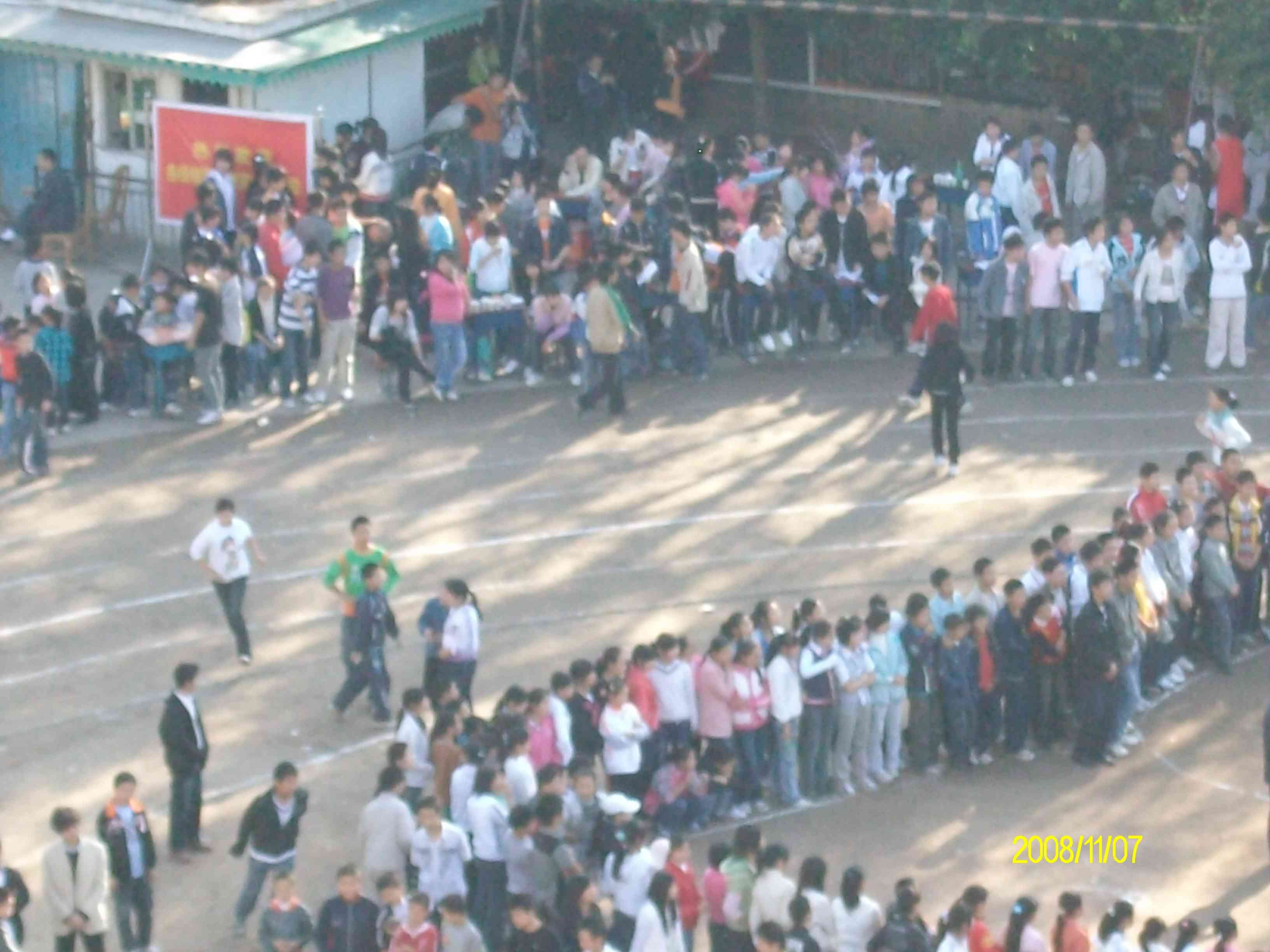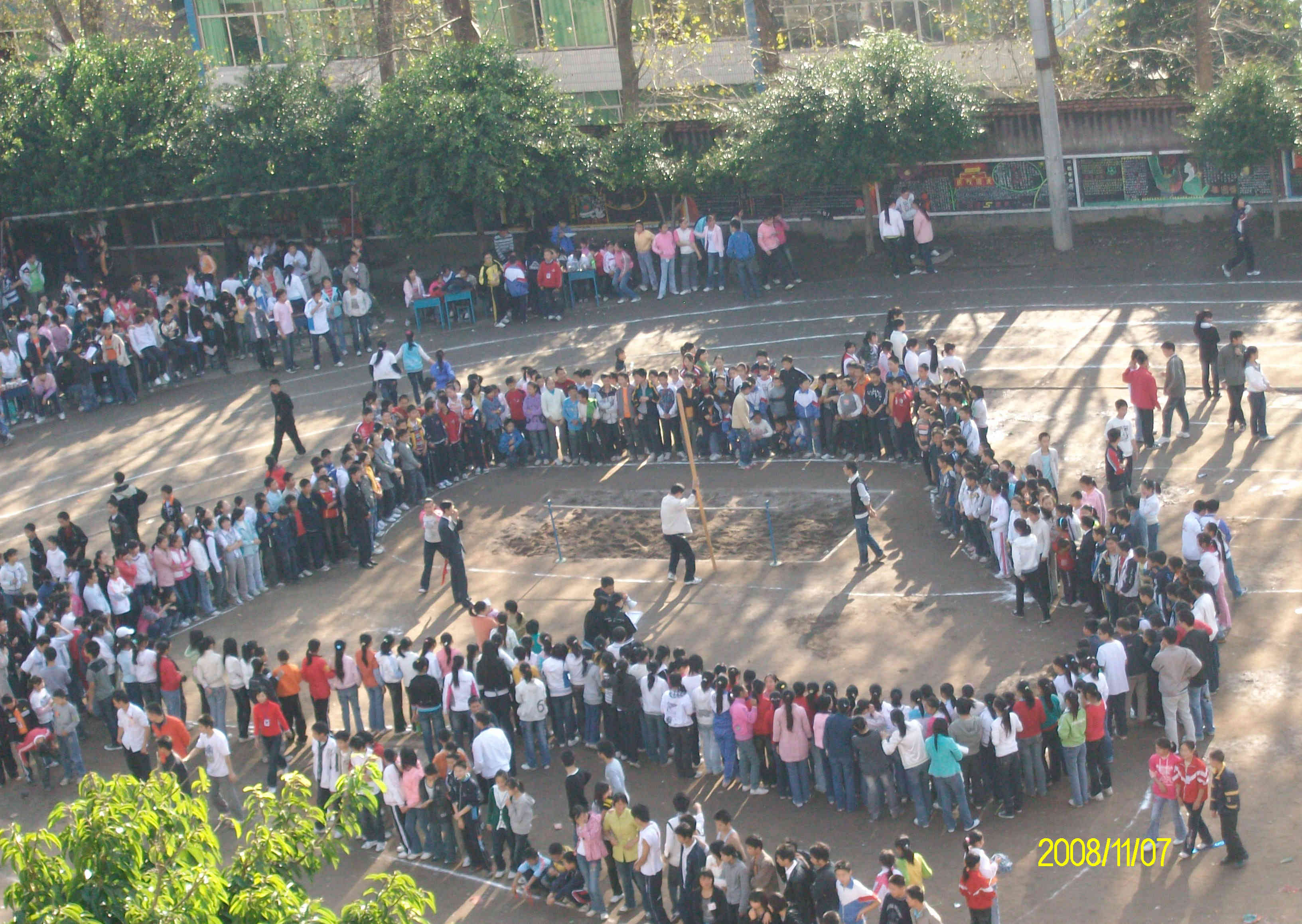 这是我们学校这期开展的校运动会,看多热闹呀,同学们围在一起为本班的运动员们加油,这也是建立集体荣誉感的最佳时机。