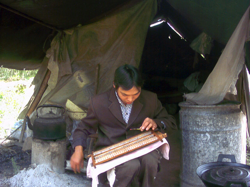 他们住的是自己搭的帐篷。帐篷外摆满了养蜂的箱子,蜜蜂在箱子周围嗡嗡的闹着。