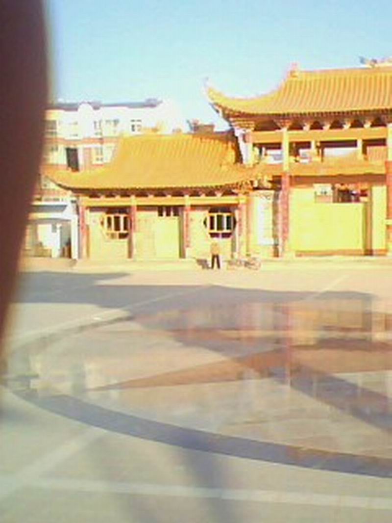 学校附近有一个广场。广场上有一个匾,提名"大佛殿广场",不难看出它的前身是一个庙宇。有个富商投资新建,就有现在的大佛殿广场。