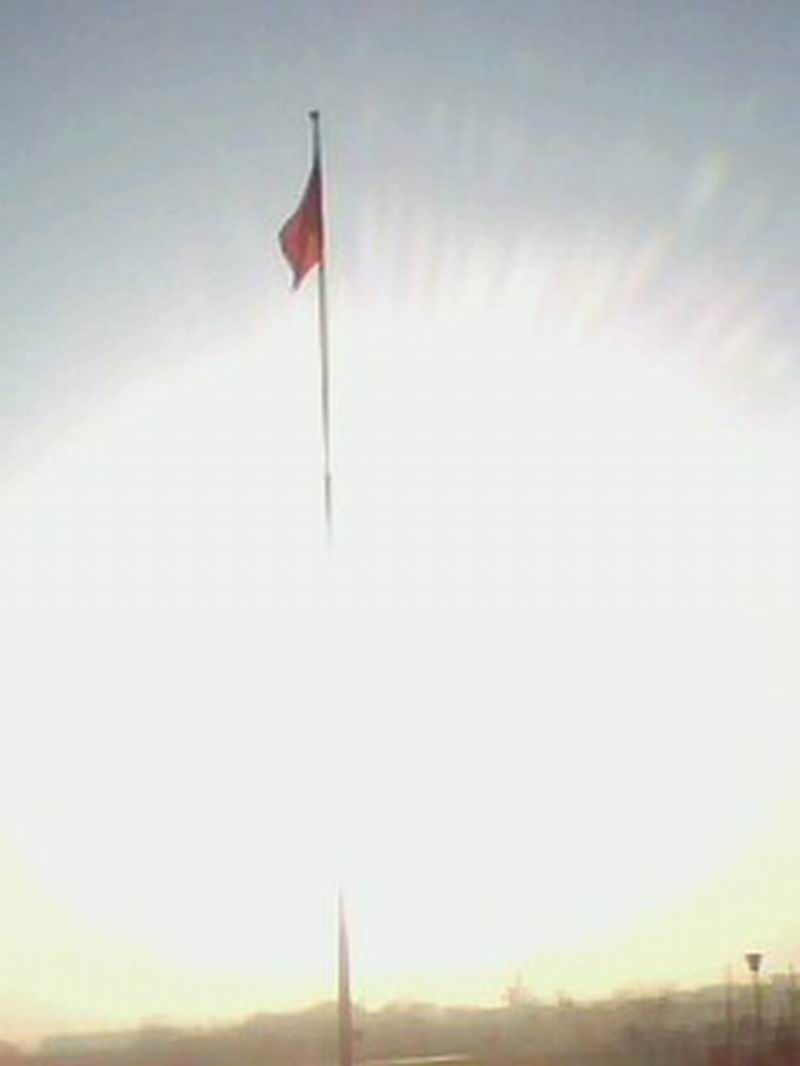 早晨懒洋洋的太阳从地平线上升起,发出灿烂的光茫,似乎在唤醒沉睡于梦中的人们。阳光下,红旗飘飘,迎风招展,不由的让我想起了一首老歌"五星红旗迎风飘扬胜利歌声多么响亮|"。