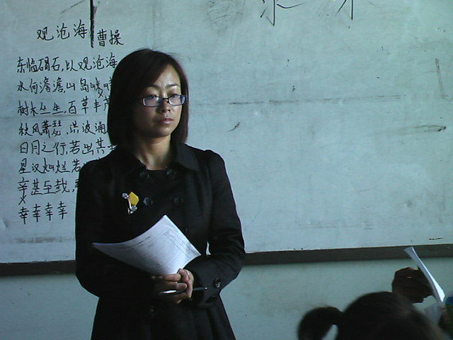 大家来自我介绍一下吧!”她的话让我忘记了恐惧,忘记了紧张,同学们介绍着自己,一堂课就这样过去了,之后又来了几个老师讲课,但在我心头记得最清晰的依旧是那个个子不高,头发长长的语文老师。“黑黑的天空低垂,亮亮的繁星相随……”悠扬的歌声从八《4》班传来,语文老师一遍遍的叫我们唱歌,她教的认真,我们学的起劲,“好,大家再唱一遍,然后我们上课。”她好听的声音传来,“黑黑的天空低垂……”一遍唱完之后,同学们劲头十足的开始学习。