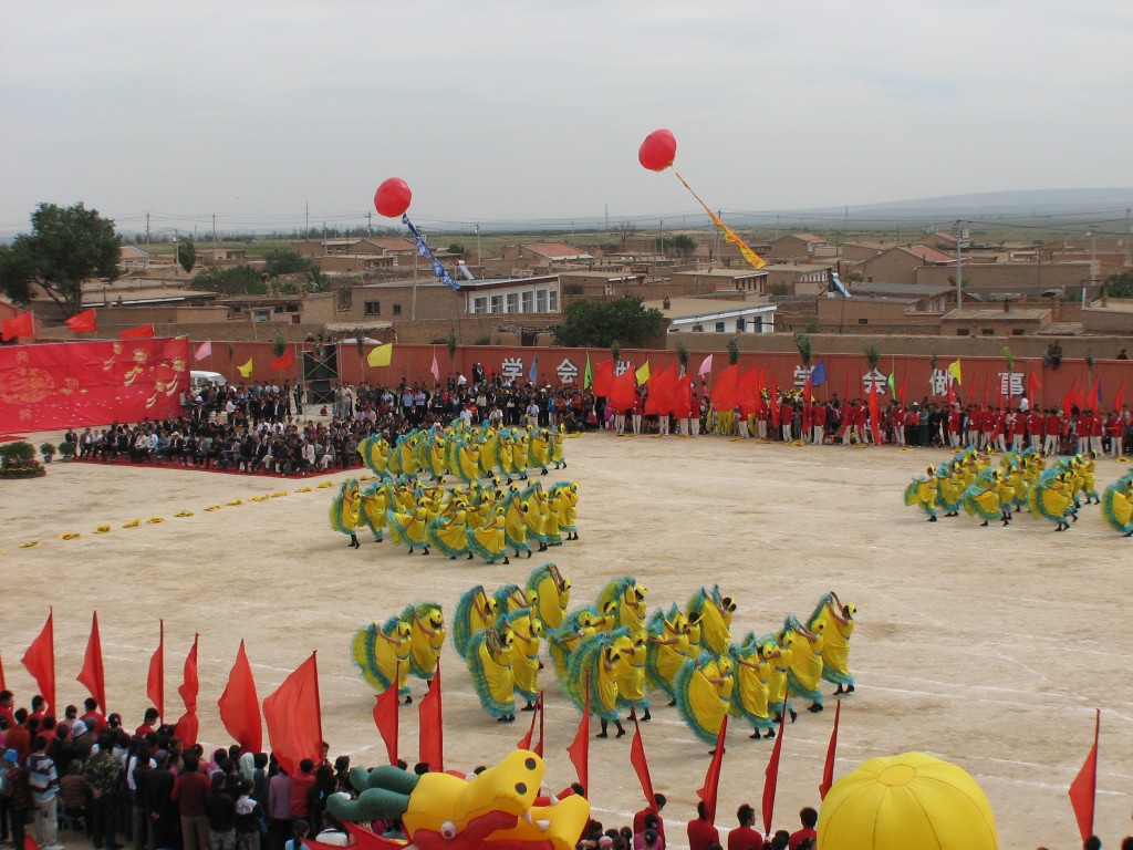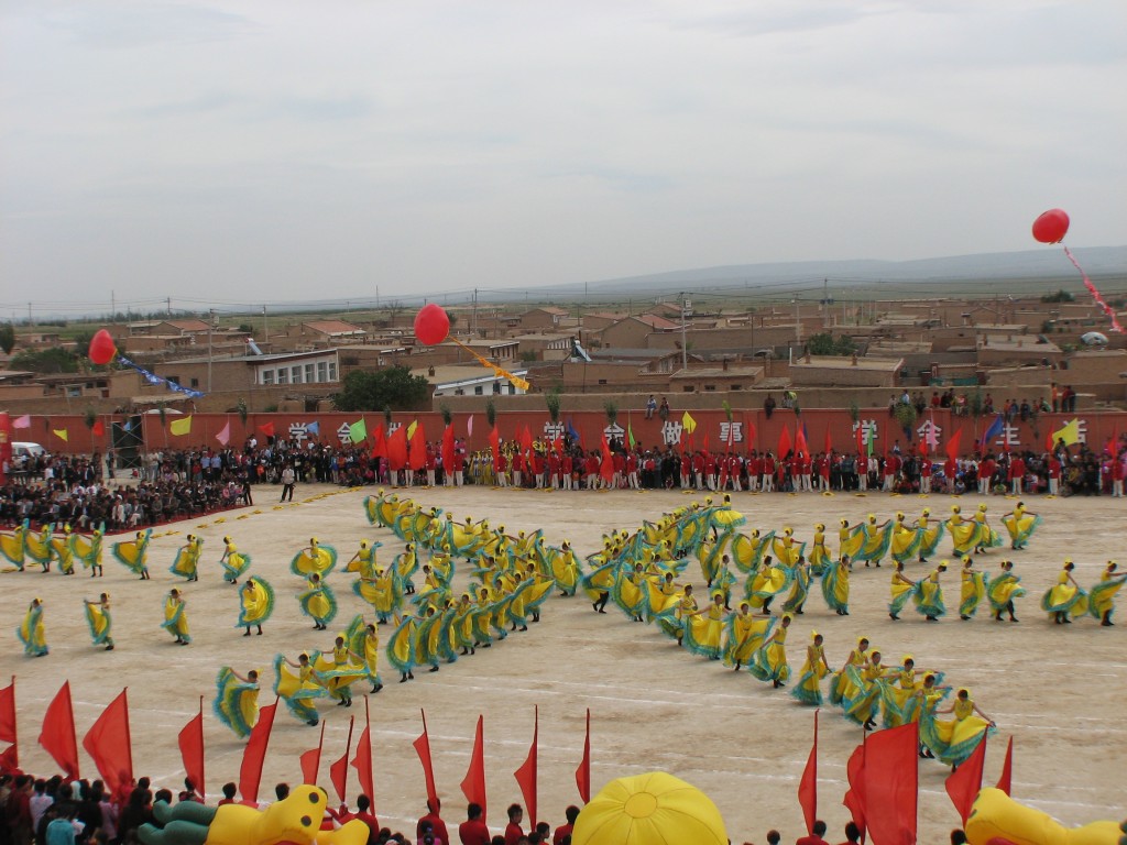 几声号角,她们挥着绿黄颜色组成的大裙子向主席台中央跑来,这个广场舞用的音乐是《踏歌起舞》,由高一年级女生组成,共104人,且不看她们跳得如何,从音乐的大气,挥起的大花裙可以看出这将又是一段很好看的广场舞,同时她会为母校五十华诞献上一份很好的礼物。