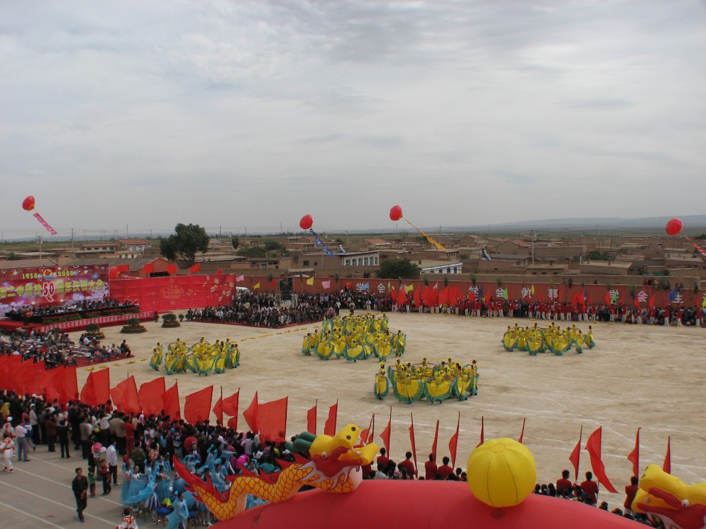 这是其中的一个"米"字变形,从高处看,就是一个大大的"米"字,在热烈的掌声中,《踏歌起舞》即将结束,感谢师妹们,她们为母校的五十华诞献上了一份很好的礼物。