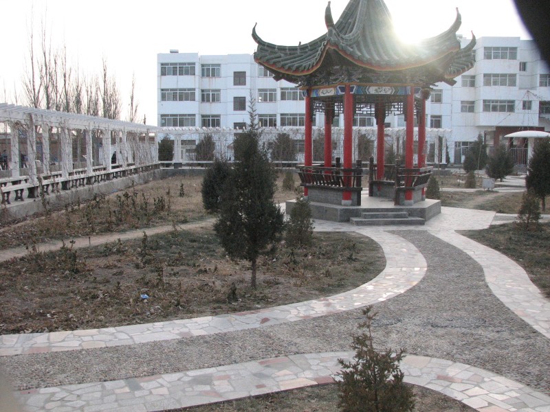 因为这个花园中间的路不是直的,是由弯弯曲曲的上铺有鹅卵石的小路组成,以供大家休闲,散步,读书的地方,花园里有亭子,蘑菇婷,其余的地方都被小草覆盖。