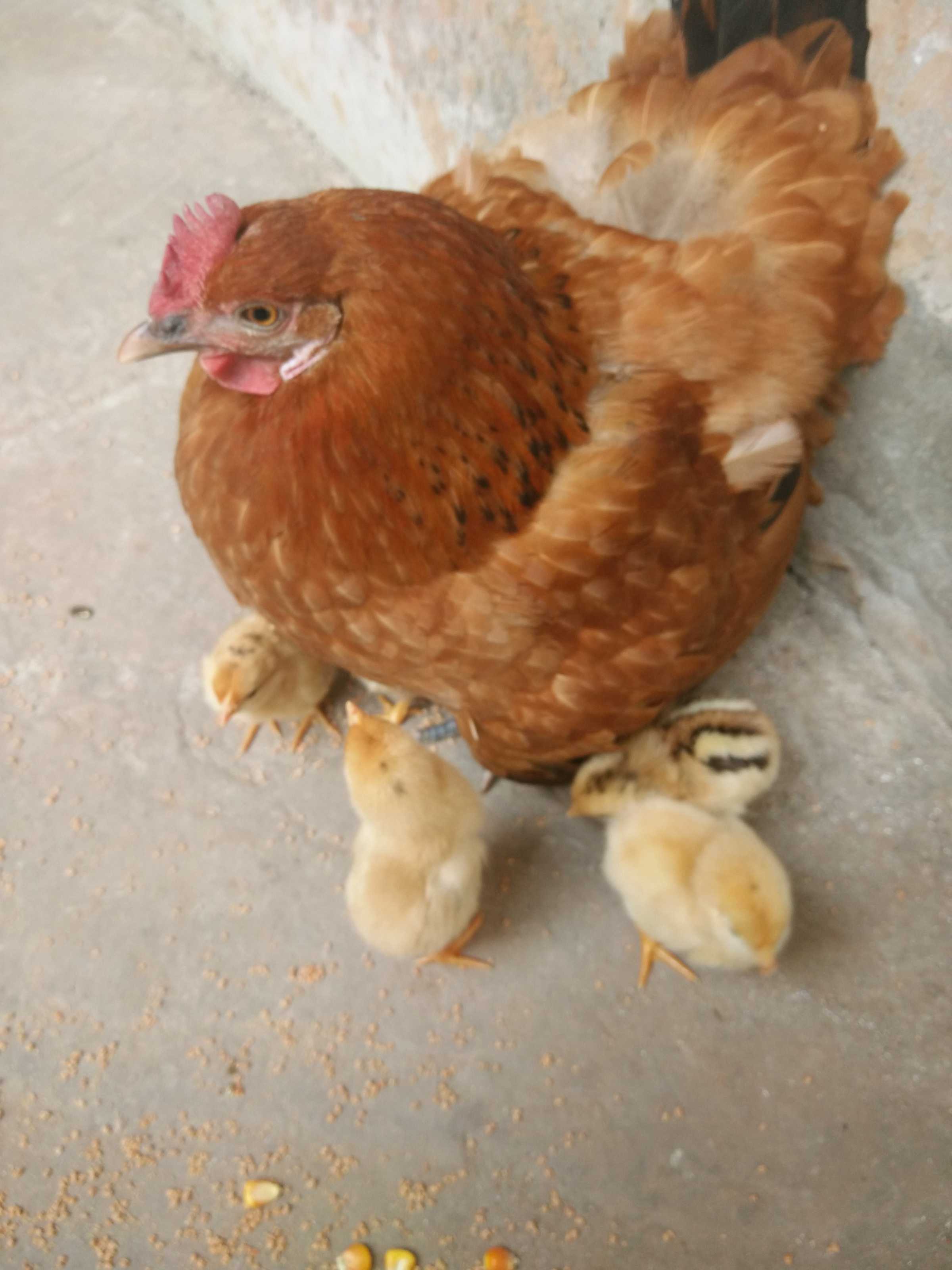 母鸡妈妈看着它可爱的孩子们一个个是那么的弱不禁风,不禁母爱泛滥。但母鸡妈妈想让它们茁壮成长,似乎不太容易。母鸡妈妈开始带着自己的孩子觅食,田地间、草丛中、树林里寻找食物,草叶,植物散落的种子,小虫子都是他们的美味。母鸡妈妈找到食物,不是自个儿吞食,而是边发出"咯咯"的叫声,边尝试,待小鸡们从四面八方跑来,津津有味的吃着,母鸡妈妈骄傲的叫着,似乎在说:"吃吧吃吧,快快长大吧。"吃饱了,喝足了,小鸡们也累了。母鸡妈妈便张开翅膀,让孩子们躲在翅膀下打盹儿。可母鸡妈妈一秒也不能休息,这时,它又得充当守卫者。一有异响,母鸡妈妈一下子警惕起来,伸长脖子,瞪大眼睛,嘴里还不时发出"咯咯"的警告声。