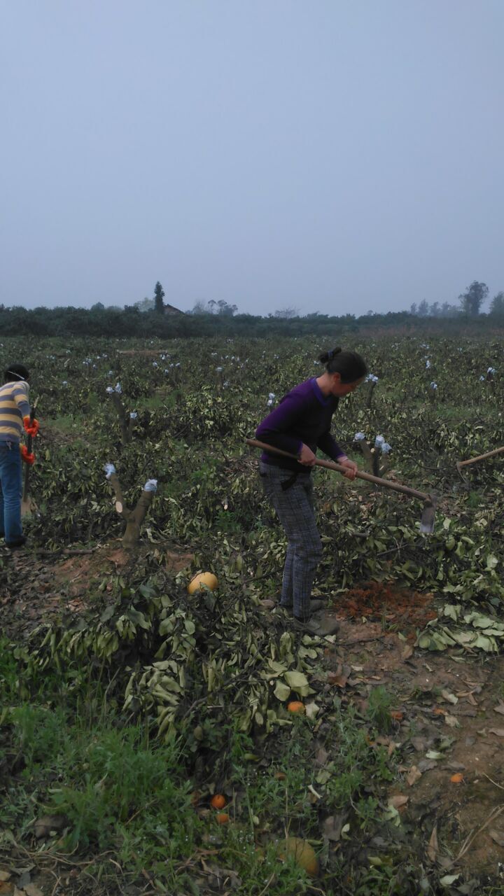 爸爸说:柚子树都锯了,每隔一棵嫁接成了春剑,没嫁接的地方栽新树苗。新树苗已经买了1000多棵,今天已经开始栽了,明天还要栽一天。