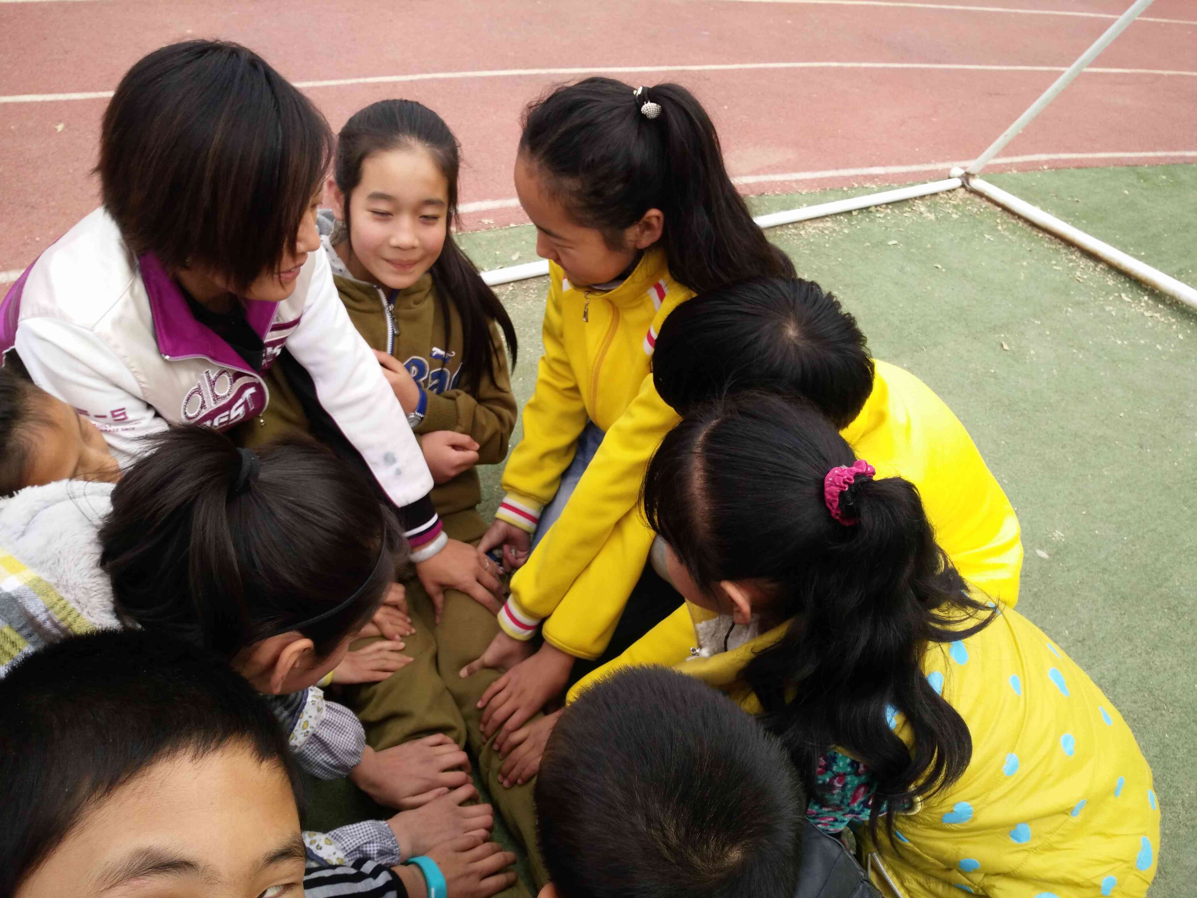 一个阳光明媚的下午,学校在开趣味运动会,同学们正玩得开心,却看见张珺被两个同学搀扶着,她泪流满面。我走过去问怎么了,同学们告诉我张珺赛前没做好热身,腿抽经了。老师就给她搓了搓腿却不见好转,就让我们扶张珺走走,另外一位老师看见了说腿抽筋了不能乱走动,然我们赶紧扶张珺坐下。他坐的地方正好被阳光直射到,老师连忙为她遮挡阳光并把她背到阴凉处,还边给她搓腿边和蔼可亲的说:"这里还疼吗?" 她微微一笑说:"好多了!"老师欣慰的笑了笑。