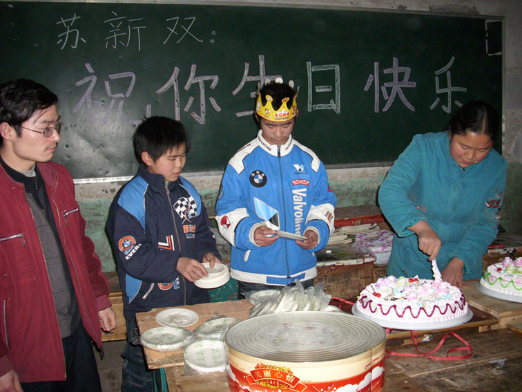 2009年3月2日,是苏新双同学最难忘的日子,也是我们全体同学最难忘的时刻。他是个孤儿,从小就失去了父母,爷爷奶奶早已过世,生活极为困难,现在已经13岁了,没有过一个生日。这次,在班主任胡老师的精心策划下,一个特殊的生日会秘密的进行着。