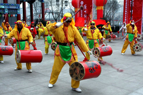 兰州太平鼓是一种传统民间艺术,至今已有600多年的历史了。关于太平鼓的来源,众说不一,一个说法是明朝朱元璋命大将徐达,冯胜率军西征,元朝王保固守兰州,久攻不下,适值元宵,兰州城闹社火,徐达受到启发,命士兵伪装耍社火,让士兵将兵器藏在长鼓中,乔装打扮,混入城中,锣鼓为号,旗卷而偃,旗开而攻,里应外合,攻克了城关。为庆贺克敌制胜,祝愿天下太平,所以称此鼓为太平鼓,又称得胜鼓。1999年10月,永登县若水镇红玫瑰村鼓队赴太原参加国际锣鼓节,皋兰县石洞镇郭家坪村的一支鼓队进京参加"龙潭杯"全国民间花会大赛的角逐,独占鳌头,捧回金杯。天下第一太平鼓将成为一个带有传奇色彩的美丽动人的传说,在皋兰县一代代传下去。有一年,皋兰县西岔镇铧尖村的八十位精壮男儿以"中国兰州太平鼓队"的名义,挥着祖祖辈辈传下来的大鼓劲了北京城,在第十一届亚洲运动会艺术节上独领风骚,出尽了风头,赢得了天下第一鼓的盛誉。这黄土地上的鼓,不正是我们所希望的一种体现民族精神的文化吗?