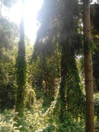 再大些,在读初中哥哥带着读幼儿园的我,去爬树。〝看,那有个蜂窝,我们去掏吧。〞我发着愣,"你在下面看好了,一会外婆来了,记得叫我一声。"哥哥掏蜂窝叮嘱着我……"啊啊啊,好疼,哇哇哇……"被蜂子扎了的我,放开大哭。"妹妹快跑啊!傻愣着干嘛!"拉着我就跑。这是我第一次陪我哥掏蜂窝,也是最后一次。也不知道是什么原因,哥哥从此与读书无缘了。现在,那棵曾有蜂窝的树也与其它树一样,都被绿油油的爬山虎和豆腐菜,一圈一圈的缠绕。哥哥也不再曾回来,我初二时老屋就开始荒废了。我是这个小村庄第一个来县城读书的孩子。记得上初中时,每次只要一放假,都会准时回到老屋,都会和村里的人聊一聊天,摆一摆在县城学校读书的趣事。
