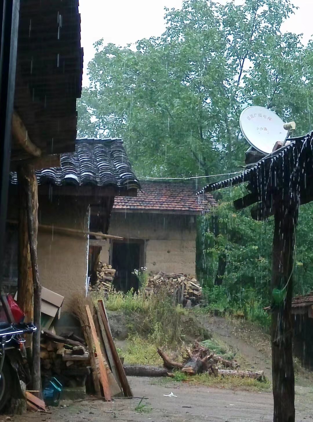 接着,就有零零星星的雨点从空中下落。先是很小的雨珠,后来愈来愈大,胡乱的拍打在人的身上,赶路的行人纷纷躲在路旁农家的屋檐下,雨珠像断了线的佛珠哗啦啦地从屋檐下落,落在地上,将泥土溅了起来,微小的泥珠像烟花在天空中绽放开来向四周飞去。
