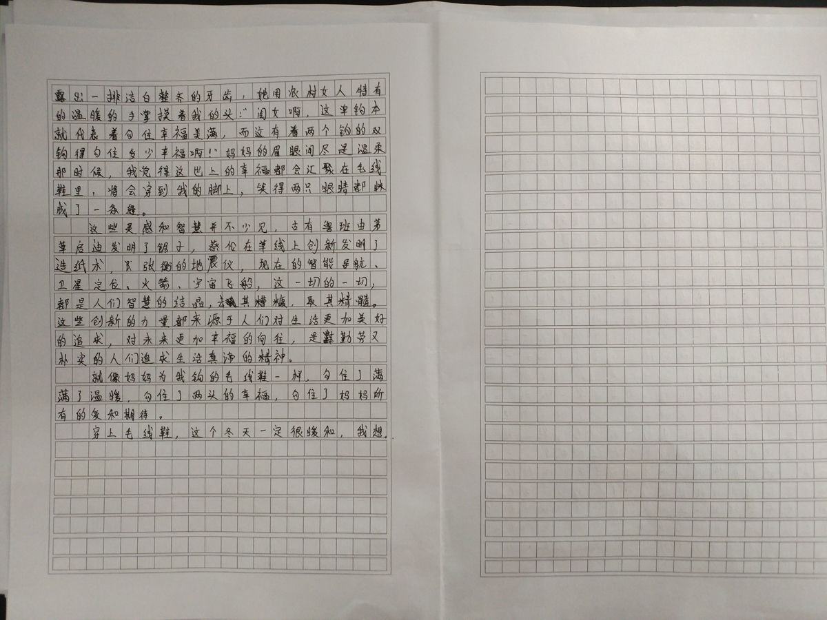 就像妈妈为我钩的毛线鞋一样,勾住满满的温暖,勾住了两头的幸福,勾住了妈妈所有的爱和期待。