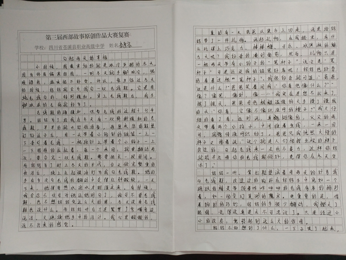 直到有一天爸爸从集市上回来,说是给妈妈带了一件礼物。说起礼物,在我眼里,有什么比得上巧克力、棒棒糖、可乐、冰淇淋的魅力大呢?我好奇的凑到面前,然而,礼物只是一根两头都带有小钩子的"笔杆子",说它是"笔杆子"可是还没我的铅笔好看呢!妈妈也好奇的看着这根"笔杆子"。我很好奇就问道:"爸爸,这是什么?"爸爸笑着问我:"你看他像什么?"像?像笔、像针、像"我实在是想不出来了,摇了摇头,爸爸用他粗糙温暖的大手摸了摸我的头:"你看,它像不像织渔网的梭子?"我又仔细的看了看,还别说,真挺像的,尖尖的两头带着两个小钩子,中间缠着鱼线,一来一回间,就将渔网织好了。爸爸见我恍然大悟的样子又接着说:"这个就是人们根据鱼梭的样子改造的,勾起毛线来一点也不费力,这样你妈就能早点将你的毛线鞋做好,免得你在冬天受冻了。"
