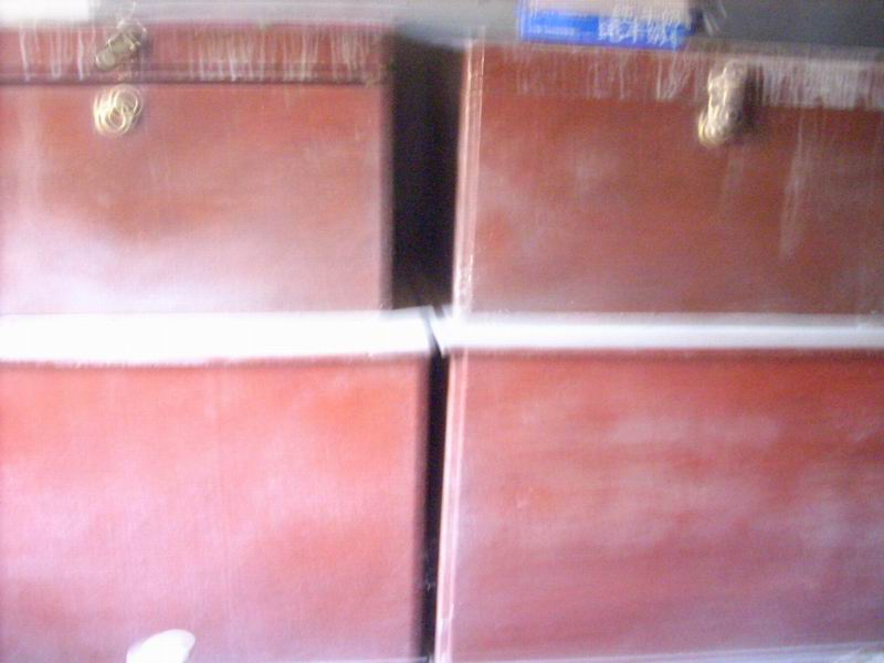 一排排缸排成“一”字形,旁边立着一个沙掉了的窗扇。远远看看这些缸像渡上了一层白漆一样。走近一看,原来是蒙上了一层灰尘。但是,粗糙的缸面却不显的脏,依然保从着光彩照人的样子。它为我家付出了一切,到头来落了一个两袖清风的样子。这不正体显了无私奉献的精神吗?好了,请大家再看一看我家的木箱吧!