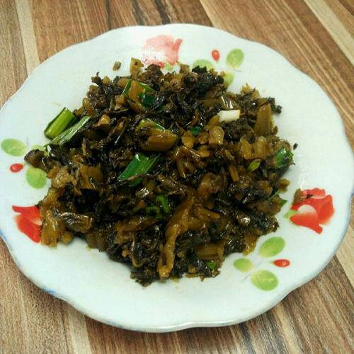 我们这里的"酸菜",不是北方的那种。北方的"酸菜"是用大白菜腌的,而我们这是用青菜做的。这种青菜我们村里基本上家家户户都有,但要做的好的,那必须是我奶奶做的。