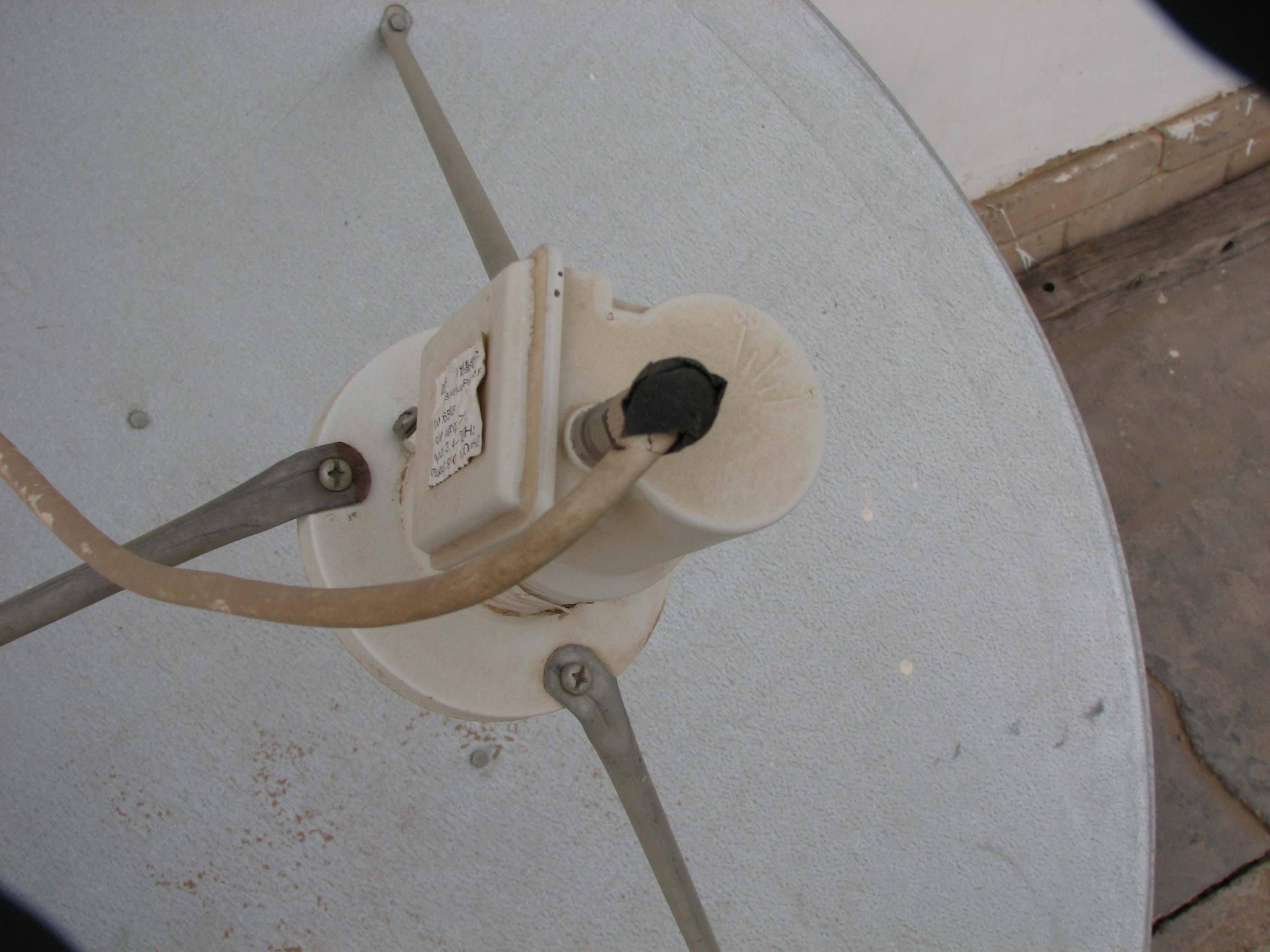 从高频头出来的信号必须通过传输线传到接收机上,再从接收机传到电视。这根线和有线电视线是同一种线,叫同轴电缆。在接头处一定要接牢,而且还要做好防水处理,因为锅在室外,免不了风吹雨打。而且它的底座一定要牢固,或用砖、石块将它压稳,这样还可以移动锅的位置,有的人家干脆将它做个水泥座,让它永久在那里。