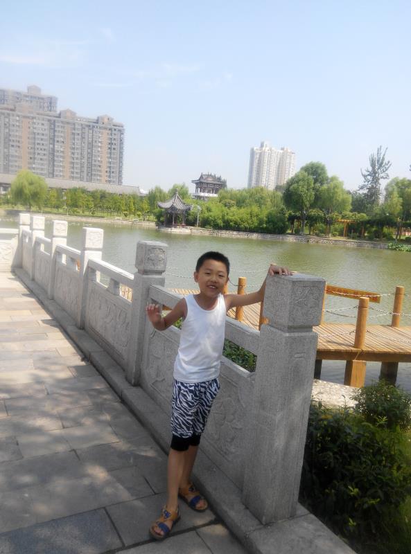 在我的家乡,有一座公园,名叫城市文化公园。公园里假山林立,草木葱茏,还有一个碧波粼粼,清澈见底的人工湖,湖上有一座用大理石雕成的石拱桥,精美别致,令人叹为观止。桥长约10米,五六个人站在上面也不会拥挤。桥的望柱上雕刻着许多美丽的花瓶,护栏上也雕刻着千姿百态的荷花、莲叶和莲藕,让整个桥看上去充满了生机。早上,红红的朝霞照在碧波粼粼的湖面上,真是“半江瑟瑟半江红”。我迈着轻盈的步伐来到湖边,出现在眼前的是一片迷人的景色,美丽极了!远远望去,这座美丽的石拱桥宛如一条玉带飘落在湖面上。近处望去就像一轮弯月横在湖上。桥下有一个半圆形的大桥洞,就像一把大扇子。桥下的景色可漂亮了!清亮亮的湖水,打着漩儿,哗啦哗啦流淌。桥下的鱼儿,有的在嬉戏,有的捉迷藏,真美啊!站在桥上向远处眺望,一群白鹅在湖面上嬉戏、玩耍。偶尔还放声高歌。一些老人在打太极拳,小朋友们在做游戏,好一派热闹的景象啊!