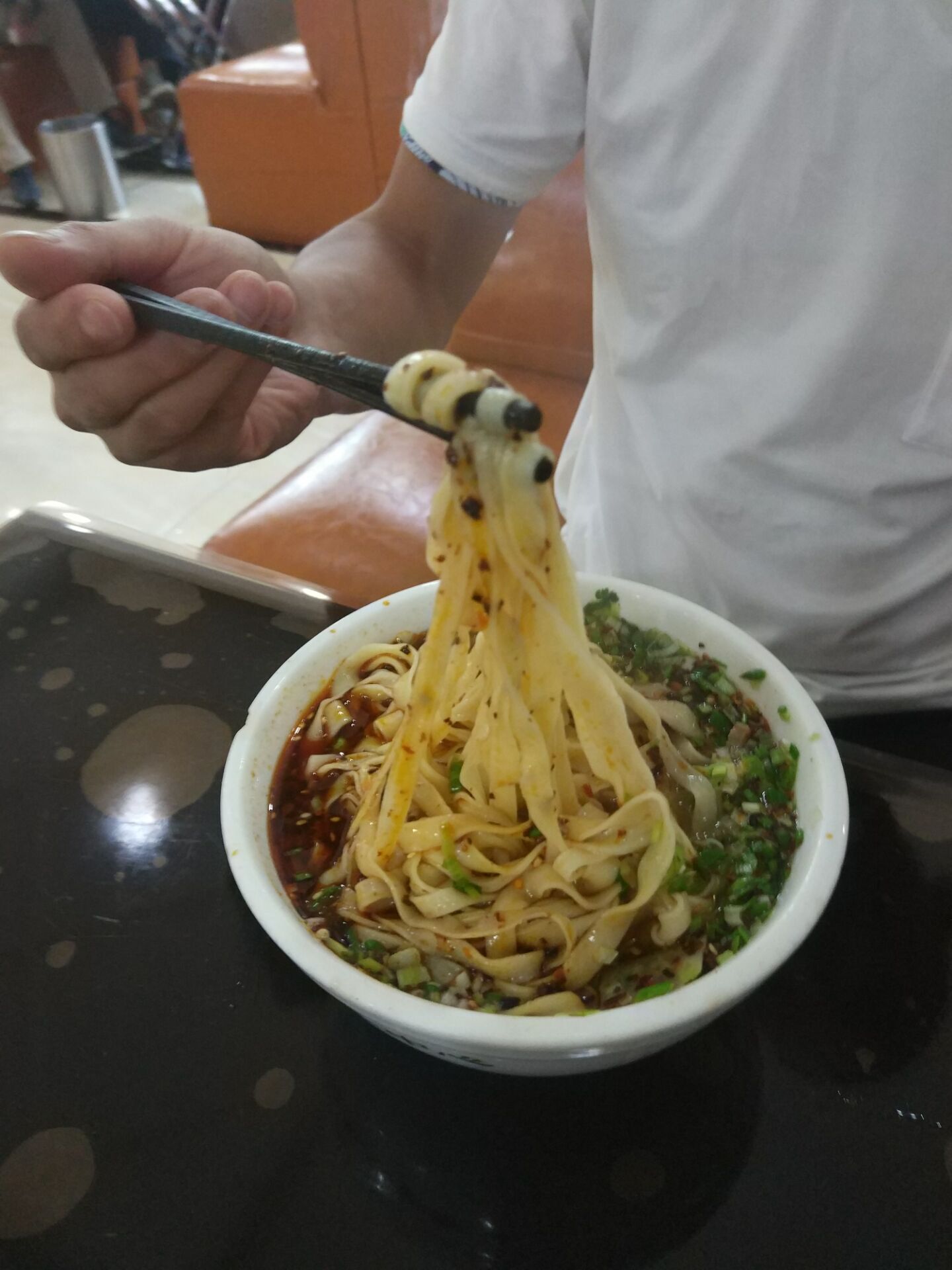 一进牛肉面馆,映入眼帘的是柔软的沙发、木制桌椅,以及大气的装饰风格,和挂在墙壁上的液晶电视,以前哪有这些东西?几张粗制滥造的桌子,几条板凳便是一家店。更甚者,端着一碗面蹲在台阶,拿起一双筷子就开吃。现在的人民知道了吃牛肉面不只是填饱肚子,更是一种享受,味觉的享受,精神的享受。