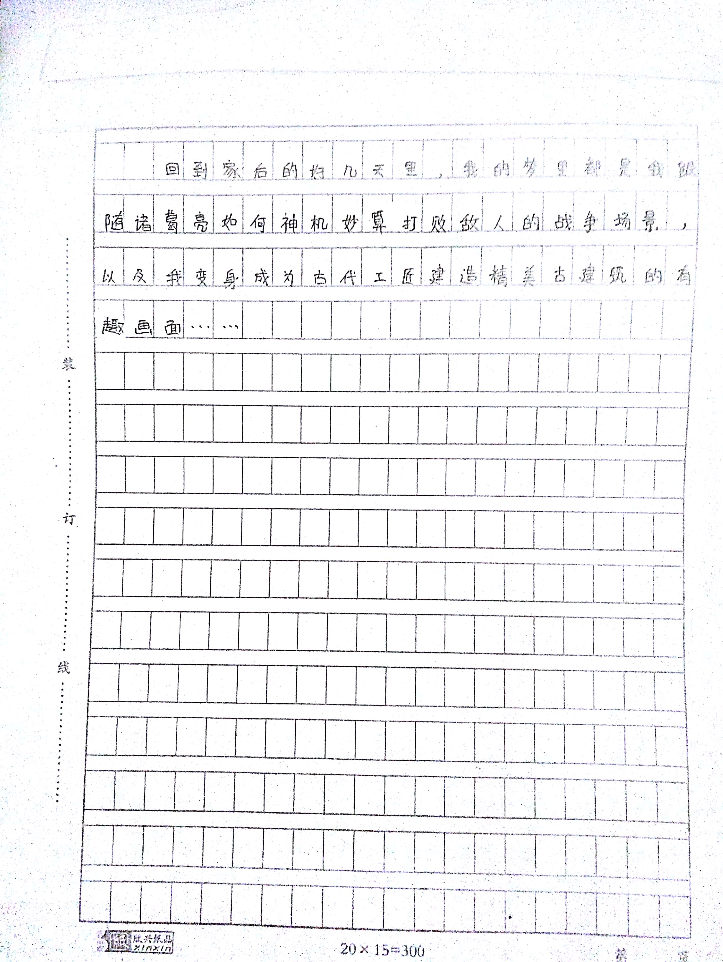 回到家后的好几天里,我的梦里都是我跟随诸葛亮如何神机妙算打败敌人的战争场景,以及我变身成为古代工匠建造精美古建筑的有趣画面……