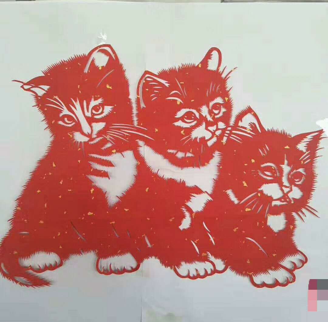 剪好窗花之后,就是贴窗花了。人们是用一种自制的胶来贴窗花。这种胶水便是开水烫过的面粉,它是很有粘性的。我们找一根竹棍,用竹棍挑一点糊在窗花的背面。拿去贴在窗户上,好看极了。家乡的人们除了剪窗花当然还会剪一些其它的小动物。有个别手法娴熟精巧的人们剪出的动物栩栩如生,造型生动好像真的一样。就连动物的绒毛也可以剪出来。我印象最深的就是婶婶剪的"福"字和"三只小猫"了。大大的福字中间镶嵌着一个福娃,甚是有趣!三只小猫蹲在一起就像活的一样,给人一种想抱起来摸摸它们,逗逗它们的感觉!