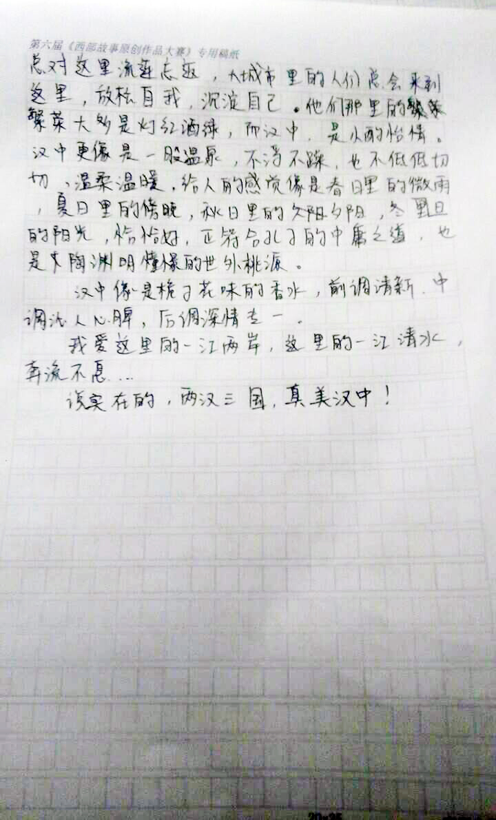 “…来此绝境,不复出焉,遂与外人间隔…”汉中是个五线城市,她没有高速发展的经济,没有浮华繁荣的面貌,没有源远流长的历史背景,她只是个名不经传的小城,但是城里的人都很幸福。这里的生活节奏很慢,没有朝九晚五的高速工作,没有摩肩接踵的各种堵塞,没有一线城市生存的重压力,这里的人们,都很尊重生活。这里有悠闲的江边漫步,有口齿留香的特色面皮,有心旷神怡的油菜花海,继承了老一辈对生活的坚守,汉中人在乎对生活品质的追求。这里的日子就像水一样流淌,时而静谧,也偶有湍急,有茶米油盐,也有鸡毛蒜皮,人们总是慢慢来,一步一个脚印,不着急。汉中的生活,类似古代的小农经济,自给自足,虽然封闭,但很大程度上是踏实、安心。