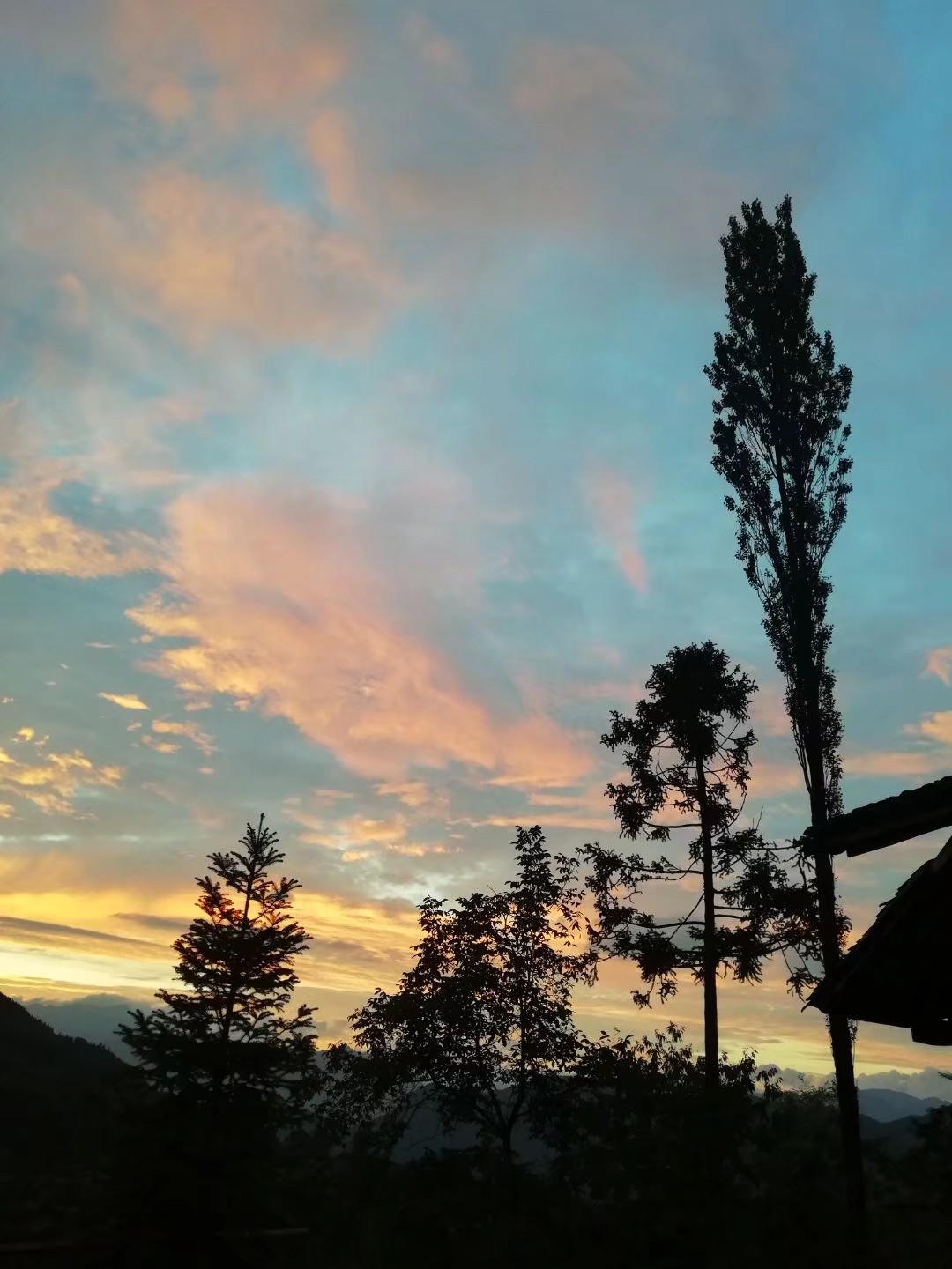 有着黑瓦白墙的房屋,也经过时间的洗礼,变得一种更具别为风情的模样,那屋前的七颗大树也不知道是什么时候不再为苍老的房屋遮风挡雨,我常常想,是不是真如我儿时所想,返了天庭,继续做快乐的七仙女了。