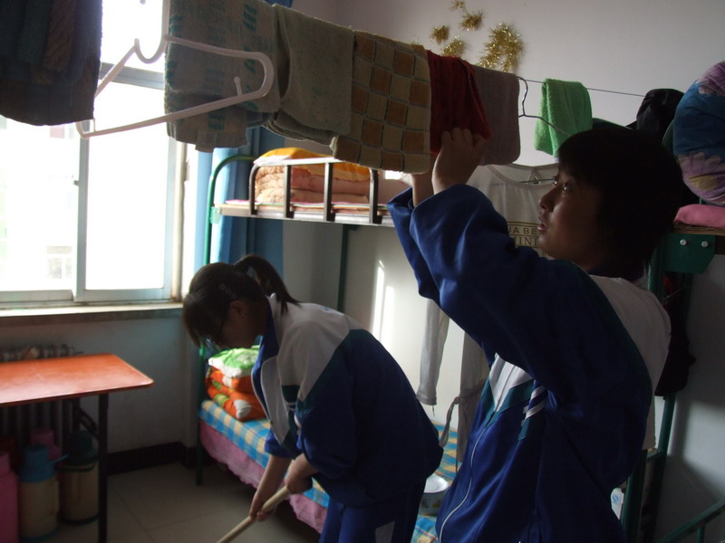 老师就站在楼道里喊了,我们不情不愿地挪出了被窝。由于我们那个宿舍是一个特殊的群体,为了给我们回民脸上添光,我们都很配合。心里再苦,我们也会去做,当然,每次送走一批检查的领导,我们也会发发气。
