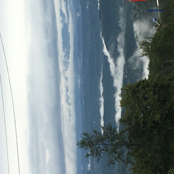 登上山顶,山风拂面,吸一口空气,是甜甜的醉,沁人心脾。层峦叠嶂,群山被清寒的雾色笼罩着,云雾缭绕,近处是一片翠绿,远处是浓浓地墨色,覆盖着“春风吹又生”的野草,覆盖着苍劲的松树。这山林真像是陶渊明的世外桃源。