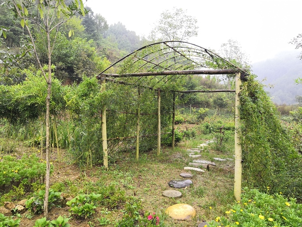 顺着小径往前走,穿过一片方形的竹林,我们会看见一个拱形的花架,花架上爬满了千丝万缕的藤条,那是蔷薇花,每到蔷薇花开的时候,那一簇簇美丽的花朵竞相开放,争奇斗艳。穿过花架,你会看见一片美丽的花海,有白色的栀子花,有黄色的菊花,有多彩的百日草,有美丽的杜鹃花......它们赶着趟儿,来展示着自己的美丽。