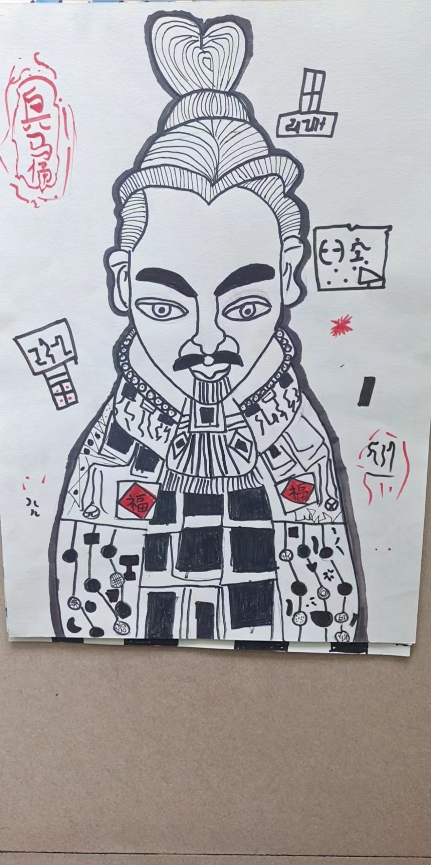举世闻名的秦兵马俑是世界八大奇迹之一。他让我们领略到古代劳动人民的智慧,是中华民族的骄傲。站在我们面前的是1号坑中的兵马俑。气宇不凡的将军俑的脸上呈现出严肃的表情。他双眼炯炯有神,好像紧盯着地图。似乎在思考如何才能赢得这场战争的胜利。 秦始皇兵马俑让人心生敬意。