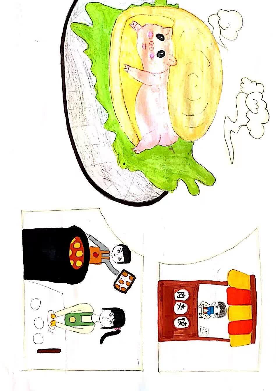 陕西有很多美食名片,羊肉泡、肉夹馍、凉皮、糊辣汤、灌汤包子等等,这些美食名片中,最受外地食客喜爱的应该非肉夹馍莫属了。作品采用夸张的描绘将肉夹馍的美味展现的淋漓尽致。腊汁肉再配上陕西独有的外焦内酥坨坨馍,肉质渗透到坨坨馍里边,暗红且晶莹光亮,咬一口,馍香脆可口的麦面香和浓香醇美腊汁肉香汇合在一起,只是给人一种"此味只有天上有"的感觉;肉夹馍是一种快餐食品,可以坐在餐桌前细嚼慢咽,也可以走在大街上囫囵吞枣,食用方便。你要不要也来一个尝尝呢?