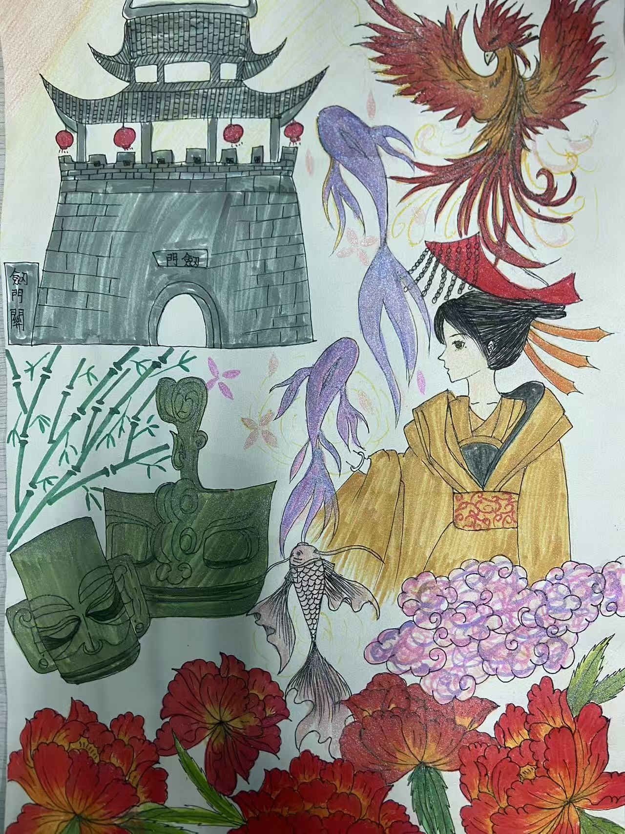 以仇英的《剑阁图》为例,画家通过"斧劈皴"技法表现崖壁的坚硬质感,结合留白与淡墨渲染云雾,展现雪色中的雄健剑门。这种创作理念强调对自然山水的精准观察与艺术化呈现,既保留了蜀道的地貌特征,又赋予画面以诗意。将凤凰的羽冠、尾翎等特征与少女发型、服饰结合,通过夸张的曲线表现羽毛的飘逸感,如用波浪线勾勒发丝与尾羽的联动效果。这种设计既保留凤凰的祥瑞意象,又赋予人物青春活力。