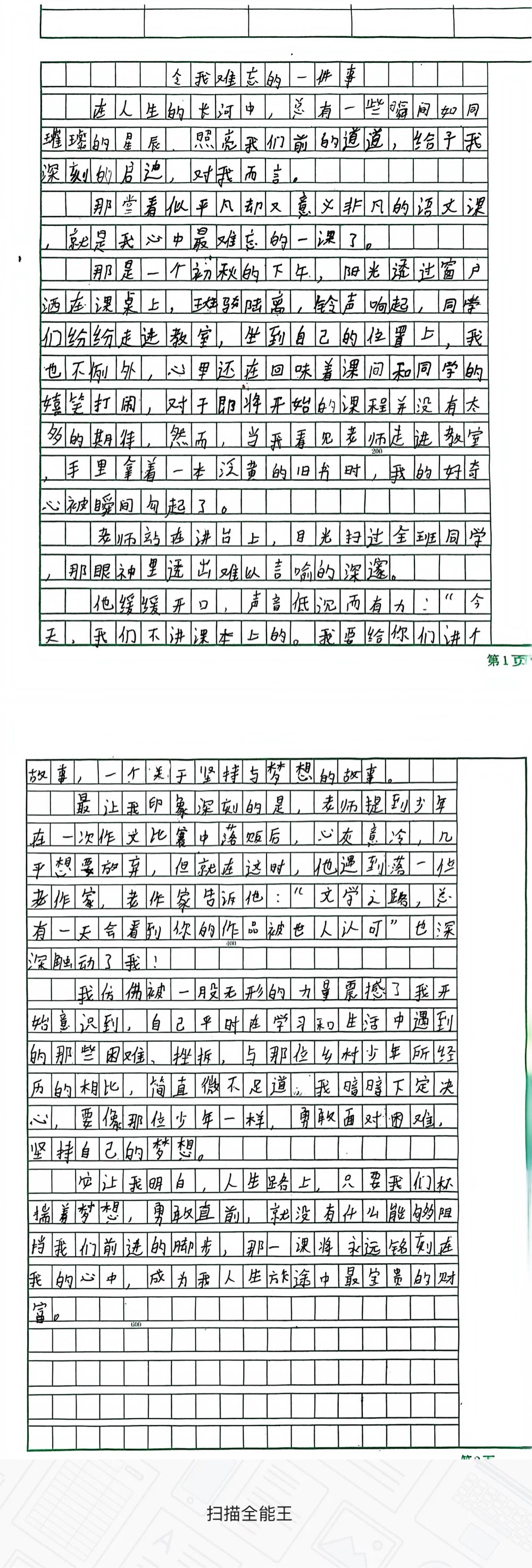 这篇《令我难忘的一件事》创作,聚焦一堂特殊的语文课,通过老师讲述的坚持与梦想故事,结合自身感悟,展现课堂的启迪意义。以细腻的场景描写(初秋午后的教室、老师的神态等)营造氛围,借故事中少年的经历引发对学习生活中困难与坚持的思考,传递出怀揣梦想、勇敢前行的人生态度,让读者在课堂叙事中收获成长的力量。